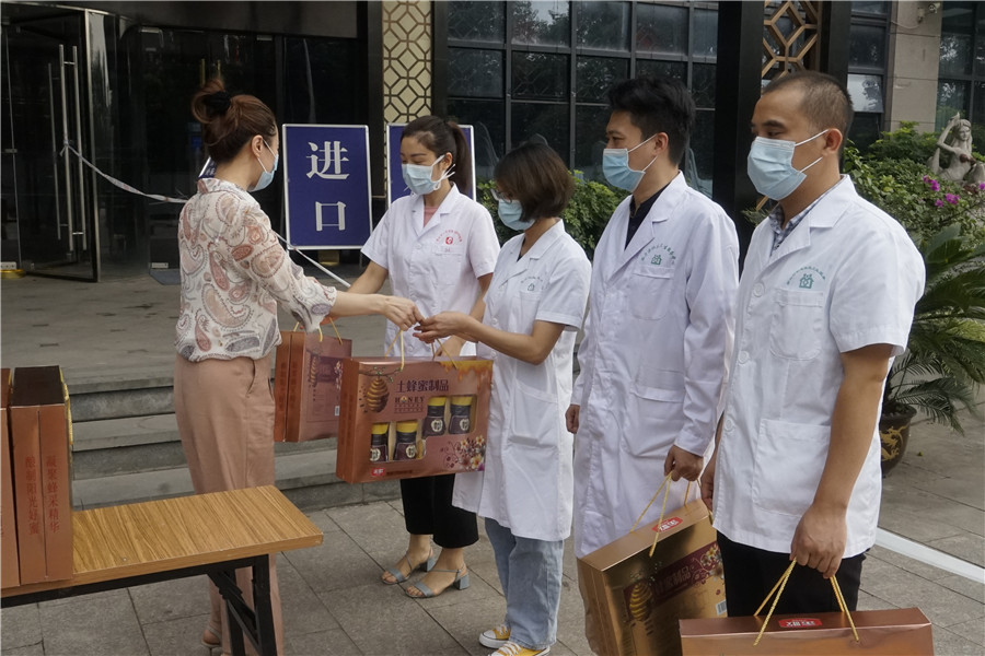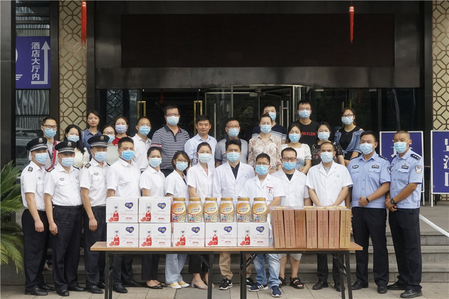 在普潤斯酒店廣場(chǎng),財政局黨委、建橋公司黨委相關(guān)負責人為駐區新冠肺炎集中醫學(xué)觀(guān)察隔離點(diǎn)工作人員送上慰問(wèn)并表示崇高敬意和衷心感謝。