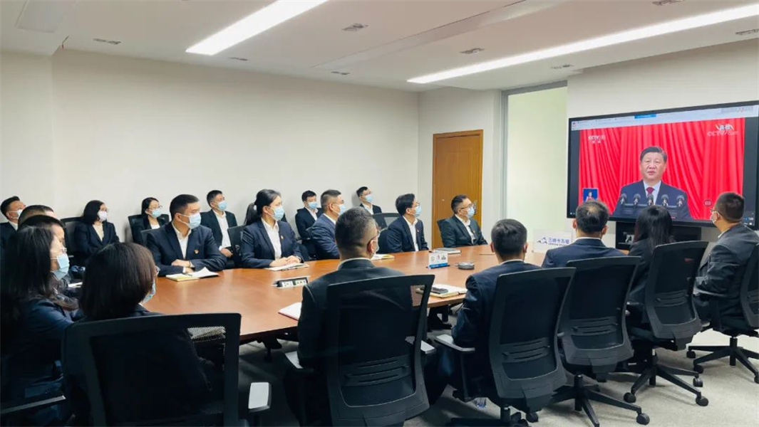 三峰環(huán)境黨員職工集中收看黨的二十大開(kāi)幕會(huì )直播