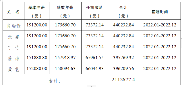 重慶渝臺創(chuàng )業(yè)服務(wù)有限責任公司企業(yè)負責人2022年度薪酬標準